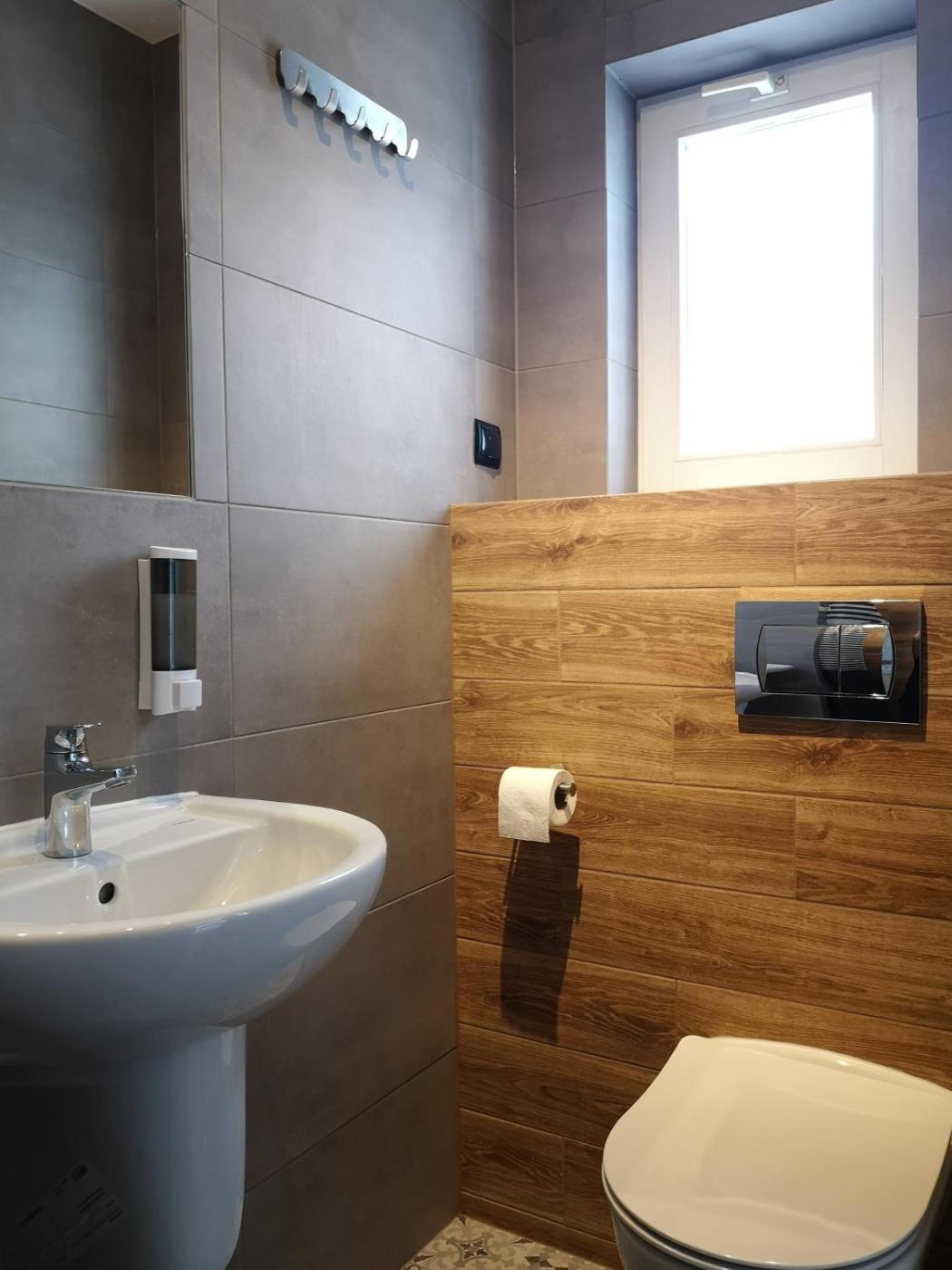Pokój Trzyosobowy z prywatną łazienką. The triple room features soundproof walls, a wardrobe, as well as a private bathroom boasting a shower and a hairdryer. Featuring a terrace, this triple room also provides an electric kettle, a high chair for children and a flat-screen TV. The unit has 3 beds. Pokój Trzyosobowy - 3 osobowy. Powierzchnia pokoju ok.: 30 mkw. ;