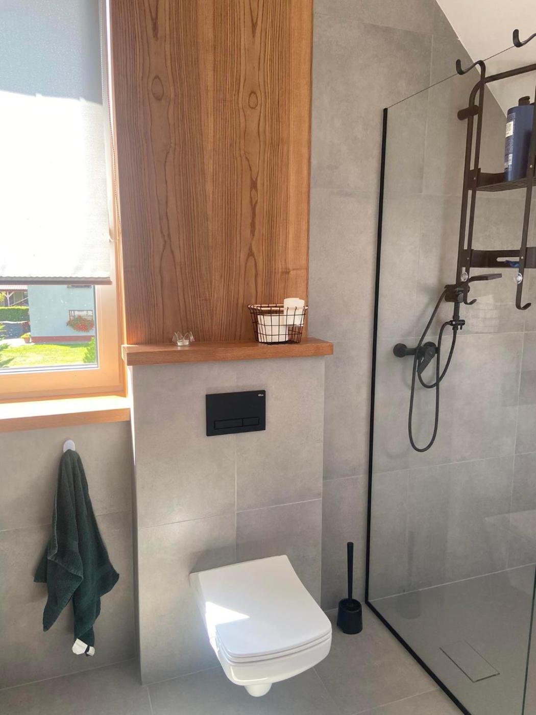Dom z 3 sypialniami. The holiday home offers a dining area, an electric kettle, as well as a shared bathroom boasting a shower and a hairdryer. Guests will find a stovetop, a refrigerator, a dishwasher and kitchenware in the fully equipped kitchen. The holiday home also provides guests with a barbecue. Featuring a terrace, this holiday home also provides a washing machine, a seating area and a flat-screen TV with satellite channels. The unit offers 4 beds. Dom wakacyjny - 8 osobowy. Powierzchnia pokoju ok.: 103 mkw.
