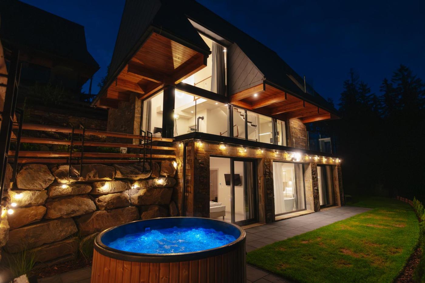 Willa. Guests will have a special experience as this villa offers a pool with a view, a hot tub and a fireplace. Boasting a private entrance, this air-conditioned villa features 1 living room, 3 separate bedrooms and 3 bathrooms with a walk-in shower and a bath. In the fully equipped kitchen, guests will find a stovetop, a refrigerator, a dishwasher and kitchenware. The spacious villa features a flat-screen TV with streaming services, soundproof walls, a tea and coffee maker, a seating area as well as garden views. The unit has 5 beds. Willa - 13 osobowy. Powierzchnia pokoju ok.: 208 mkw.
