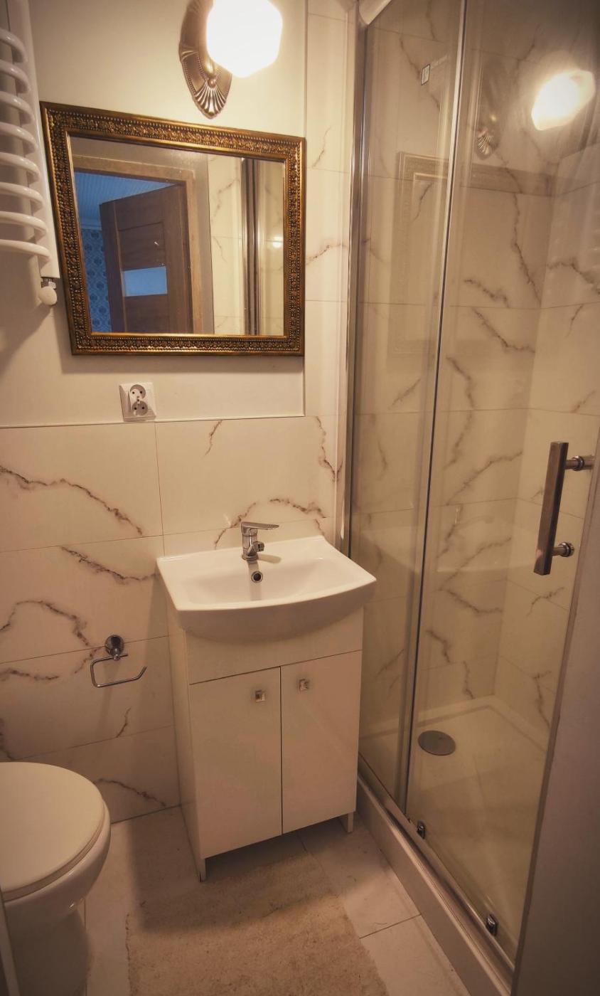 Pokój trzyosobowy. This triple rooms standout feature is the fireplace. Guests will find a stovetop, a refrigerator, kitchenware and an oven in the kitchenette. The triple room also has a barbecue. The triple room offers soundproof walls, a tea and coffee maker, a terrace with garden views as well as a private bathroom featuring a shower. The unit offers 3 beds. Pokój Trzyosobowy - 5 osobowy. Powierzchnia pokoju ok.: 30 mkw. ;